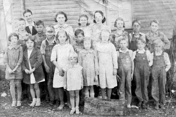 Ruth Grigg, teacher, Lurlie Sloan, Maymie Lee Dillehay, Era Mai Gregory and Beatrice Gregory.