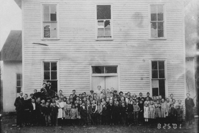 Pleasant Shade School in 1916 - 1920. None of the people are known. The school was located