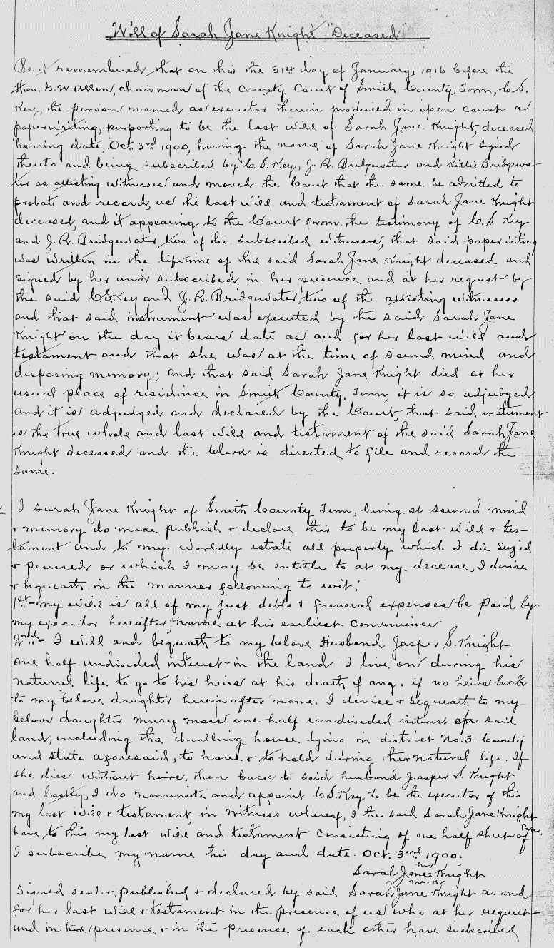 in the will. After Jesse's death she married Jasper S. "Jack" Knight b. December 11,1865