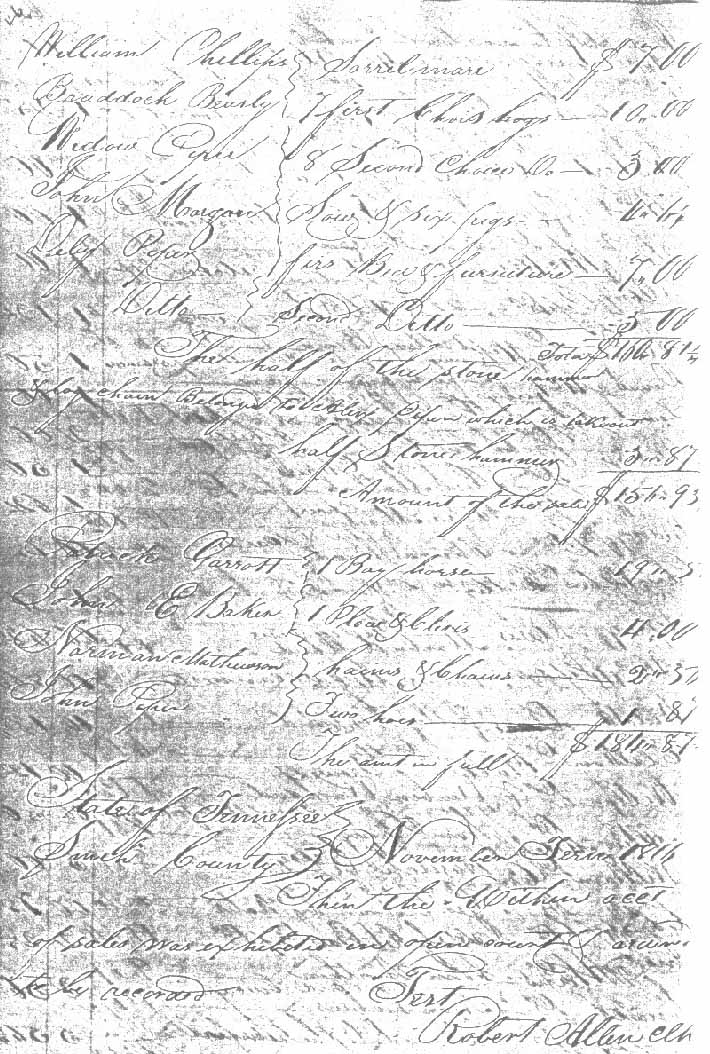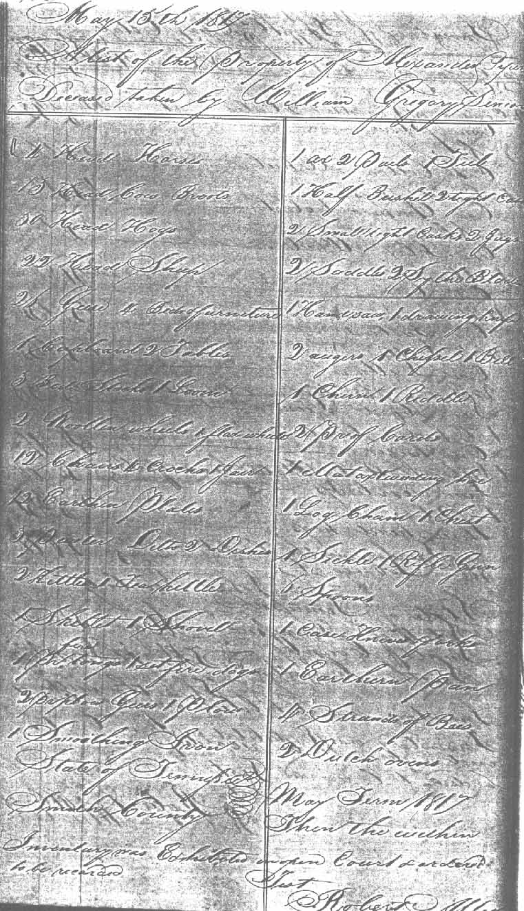 *Transcribers note: looking at this inventory on page 1 and the items recorded sold on page 2 and the total dollar amount of the sale, it appears to me that there is a page missing from the sale? Not all of the items from the inventory are listed on page 2 and the dollar amounts recorded for each sale does not total the final amount of the sale.
