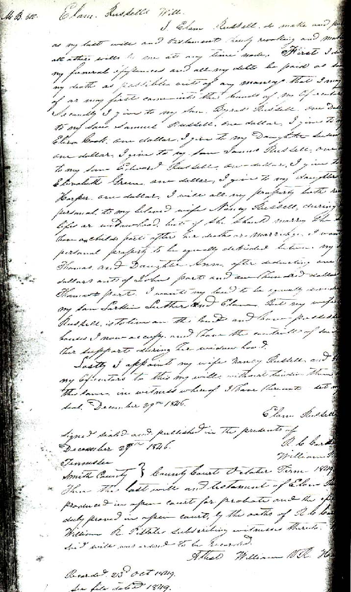 my son (sons?) Larkin Luther and Elam. But my wife...(Nancy?)