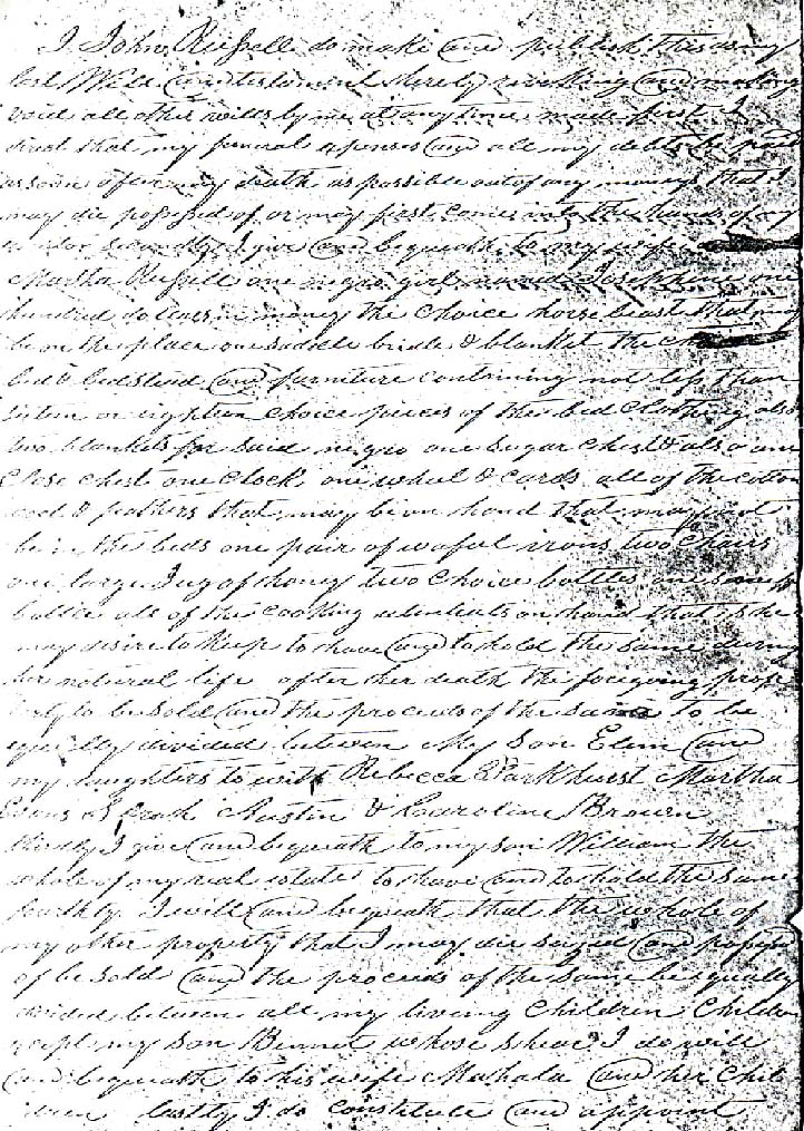 heared(sic) & my son Elam Russell my Executors to this my laste(sic)