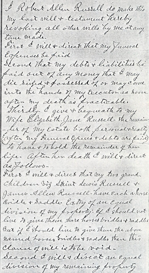 I have a story about a barn raising for Allen Russell that was handed down by relatives. Evidently, there