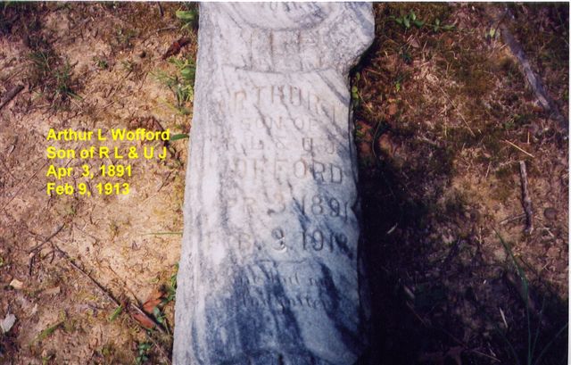 Arthur L. Wofford, son of R. L. & U. J.. April 3, 1891 ­ February 9, 1913