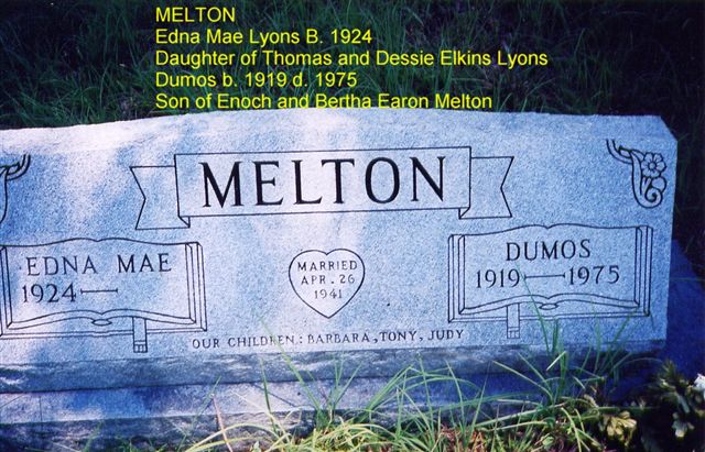 Dumos Melton, 1919-1975, Edna Mae Melton, 1924, married Apr. 26, 1941
