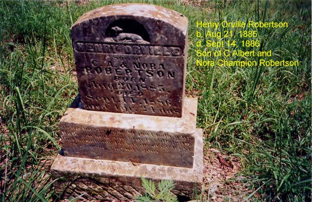 Henry Orville Robertson, son of C. A. & Nora, August 21. 1885 - September 14, 1886