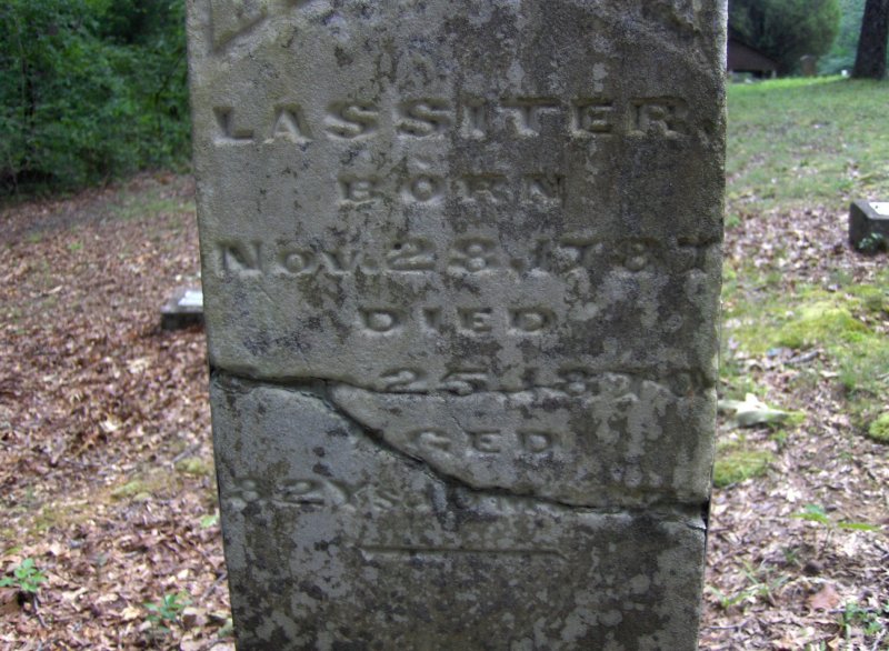 Rebecca Lassiter, Born Nov. 28, 1787, Died Sep. 25, 1870, aged 82 Ys., 10 Mos., ?? Dys.
