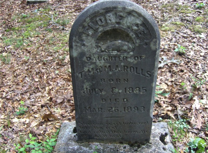 Florence, daughter of T. M. & M. A. Rolls, Born July 8, 1885, Died Mar. 26, 1893