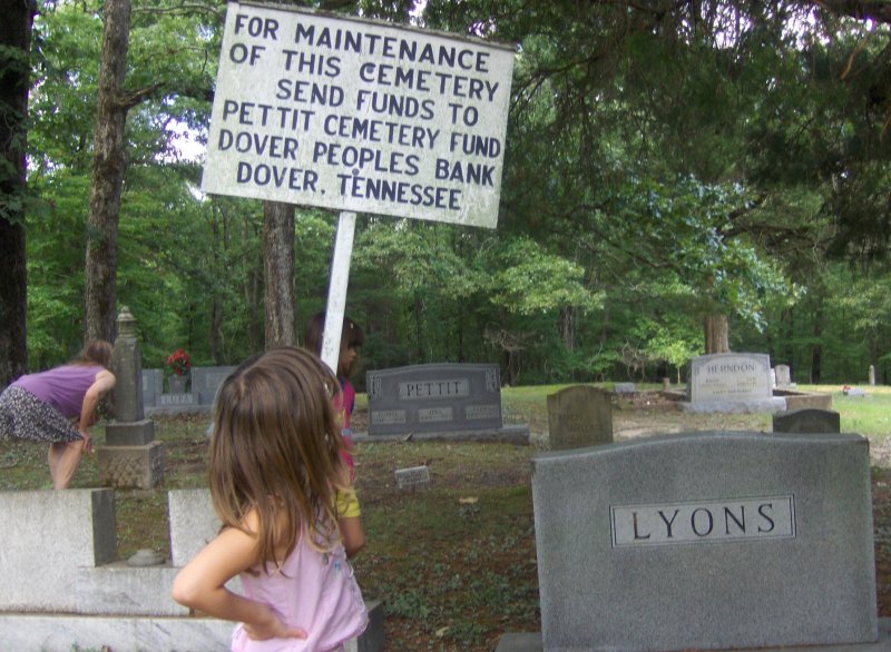 The Pettit Cemetery was also a relocation cemetery for graves from the Shemwell and Nolin cemeteries, moved before Lake Barkley was formed.