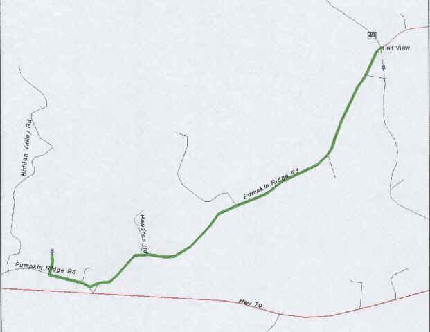 Barrow(on Pumpkin Ridge): Coming down the Trace, drive to where Pumpkin Ridge and Hickman Creek Rd intersect with 49. This will be just above Gene Crutchers Store. Drive all the way out the ridge, you will see Hwy 79, but don't turn on to 79, just keep driving straight behind Cindy's (restaraunt). It will be on the first rd to the right after you pass where the ridge rd connects with Hwy 79. (note the first road to the right on the map is actually a driveway). If you are coming from Paris Landing, turn left on old 79 just before Cindy's and it will be the second road to your left. If you are coming from Dover, turn right onto Pumpkin Ridge Rd at the connect and bear left. Again it will be the first road to the right.