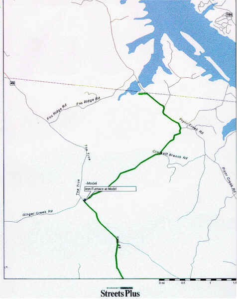 Turn onto Hwy. 49(The Trace) at Barretts follow the road all the way to Model, and the iron furnace will be to your right. Just after the furnace there will be a road turning to the right, this is Crocketts Creek Road, take this road. Drive on Crocketts Creek Rd about a mile and there will be a road going to the left. Take this road, drive until you get to Pryor Creek. Right before you go across the creek, there is a road to the left, take this and the cemetery will be down the road a little ways and to your left. The road is not shown on my map, but it is there. The TVA used to have some eagle nest down there as well, I don't know if they are still there.