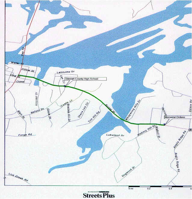 Go into Dover, and turn at the square on Hwy. 49 going toward Tennessee Ridge, keep going straight, and you will pass the high school on your left. Keep going for approximately 1 and a half miles and Memorial Gardens will be on your left. It is right across the road from the Masonic lodge.