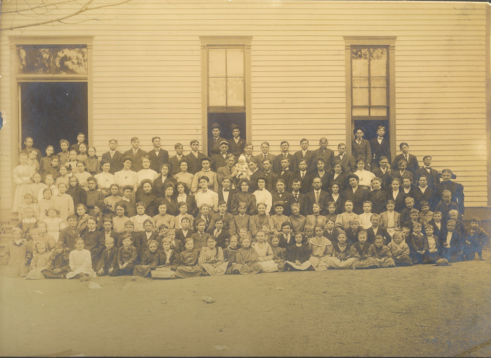 Miss Winifred Muhs is in the 3rd row, 12th from left, directly below the couple holding the baby. This was her first teaching job.