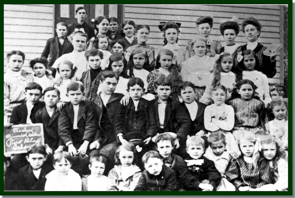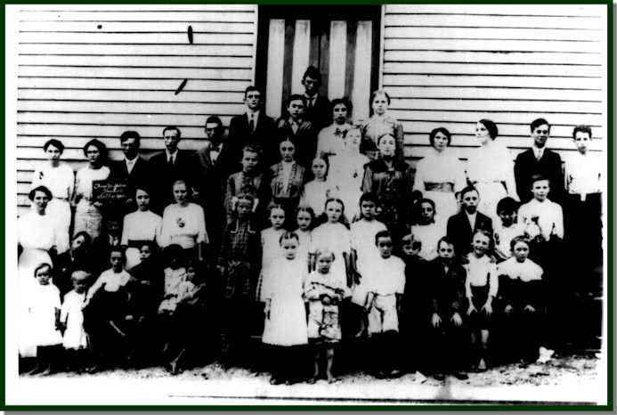 Minnie Parker, teacher. Dick Vinson, Tandy Cook, Janie Vinson, Iva Futrell, Evelyn Heath, Eunice Heath, Dee Vinson, Mertie Vinson, Ida Vinson, Oeleana Cable, Birdie Futrell, Laura Cable, Minnie Parker, Ida Barrow, Mary Barrett, Alice Fox, Lillian Cook, Dill Heath, Mary Futrell, Zeulo Cable, Cora Fox, Nell Futrell, Nett Futrell, Finis Cook, Claude McDougal, Clarence Vinson, Wayne McDougal, Clarence Heath, Clarence Stavely, George Barrett, Mary Jane Vinson, Irene Stavely, Zipha Dill, Clarence Cook, Ralph Cook, Clifton Barrett, Wilmer Heath, Rose Barrow, Lloyd Barrow, George Barrow, Willie Futrell, Ludie Downs, Belva Vinson and Pearl Dill.