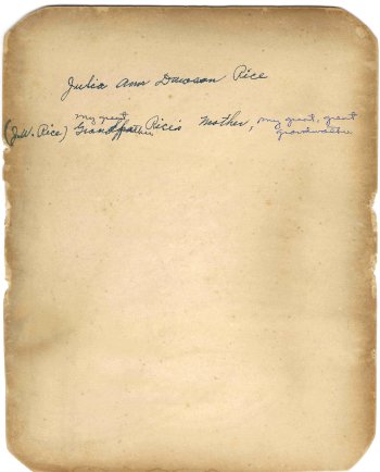 (written on back of photo in two handwritings) "(J. W. Rice) my great grandfather Rice's mother, my great-great grandmother"