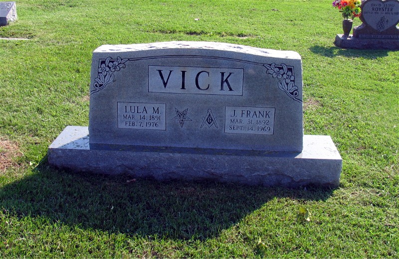 Joseph Franklin Vick and Lula Mathis. Both born in Bumpus Mills, Stewart County, TN. Buried in Eastside Cemetery, Martin, Weakley County, TN