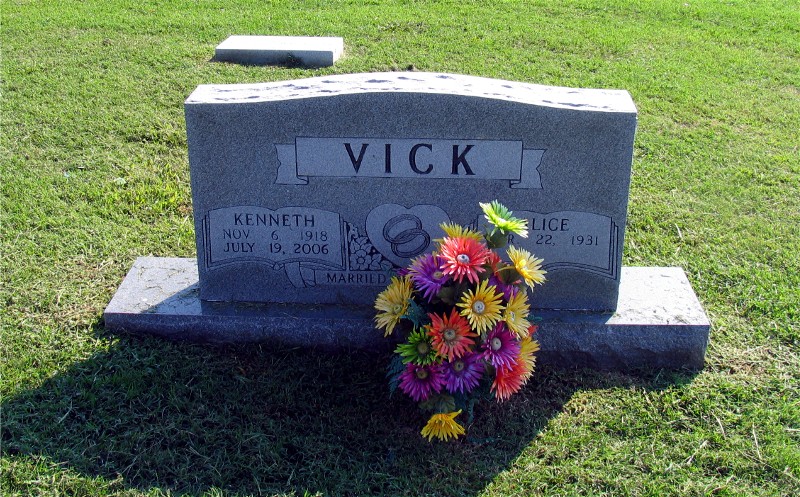 Kenneth Milton Vick, son of Joseph Franklin Vick and Lula Mathis Vick. Buried Eastside Cemetery, Martin, Weakley County, TN