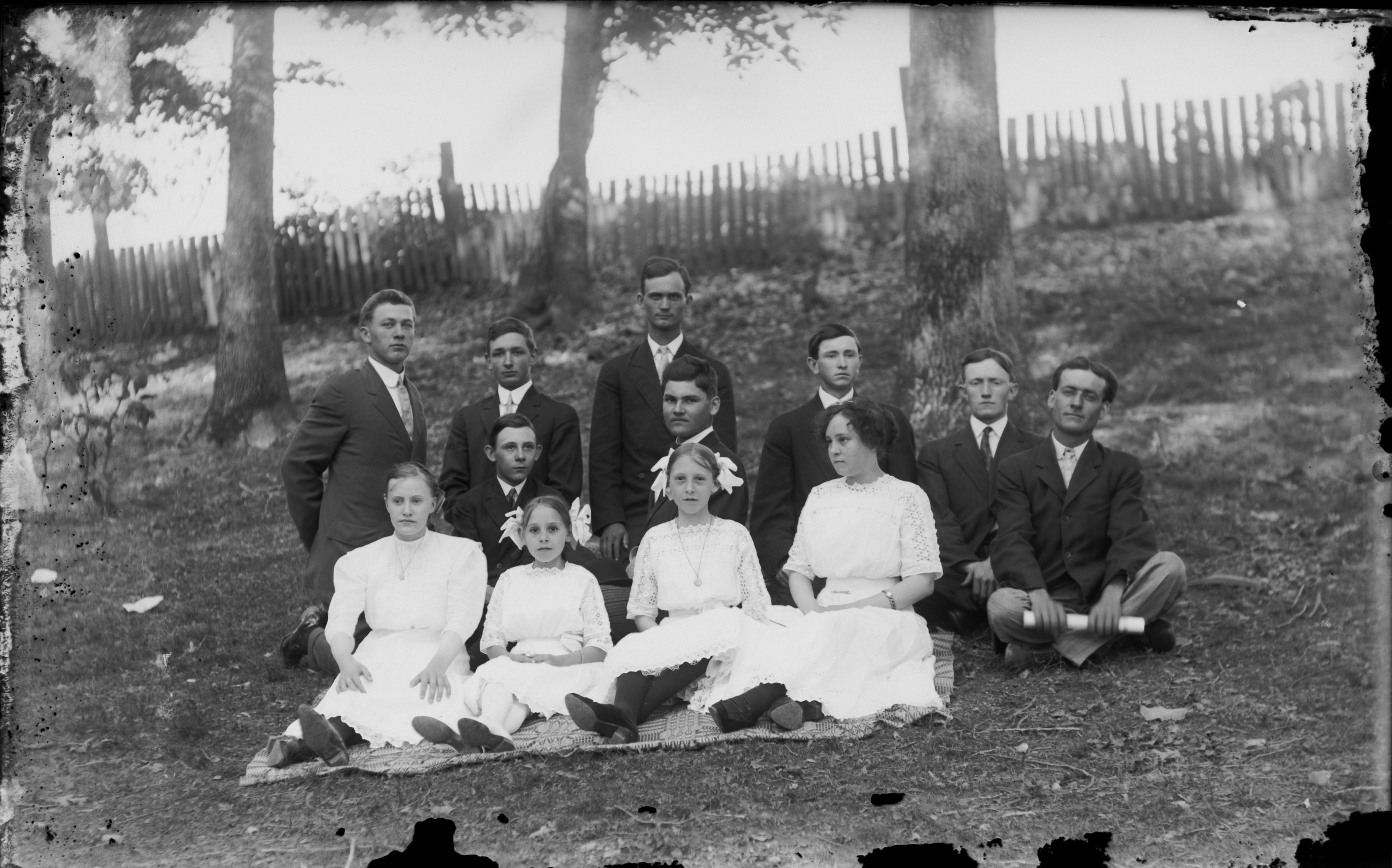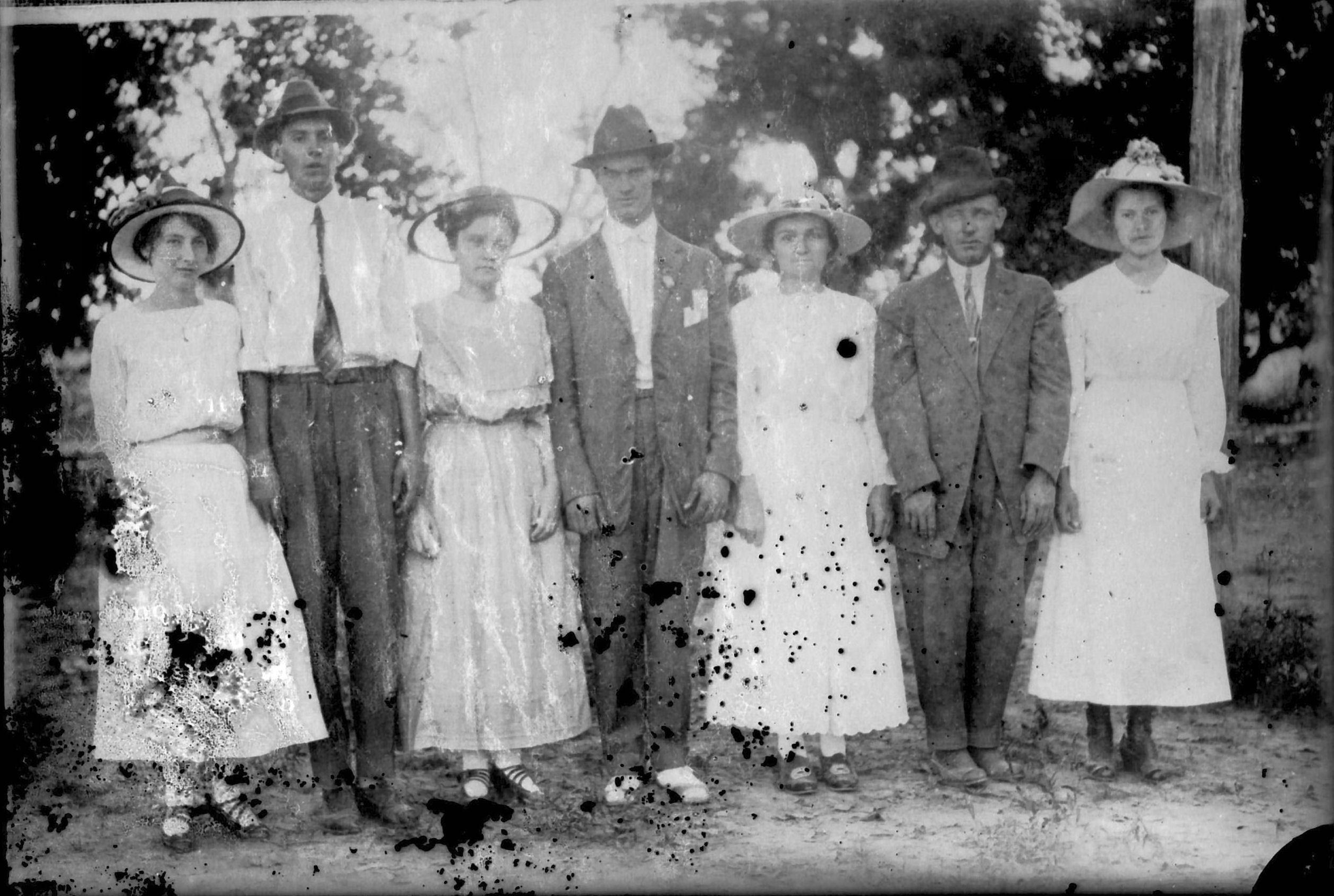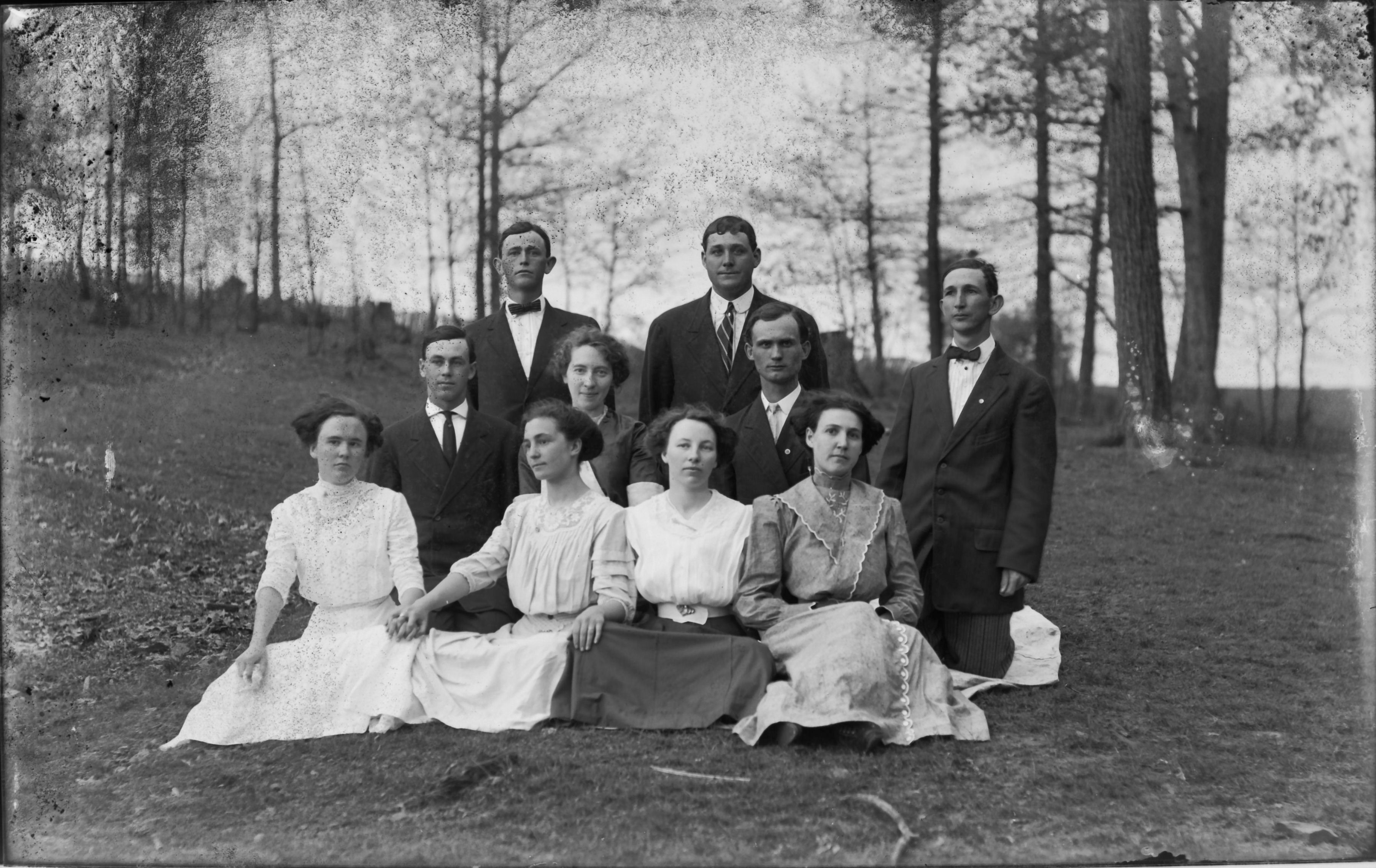 Front row: Sam Wall, Annie Wilson, Charlie Smith, unknown, ____ Pruitt, Madie Smith, Burley Bibb, Pearl Cobb