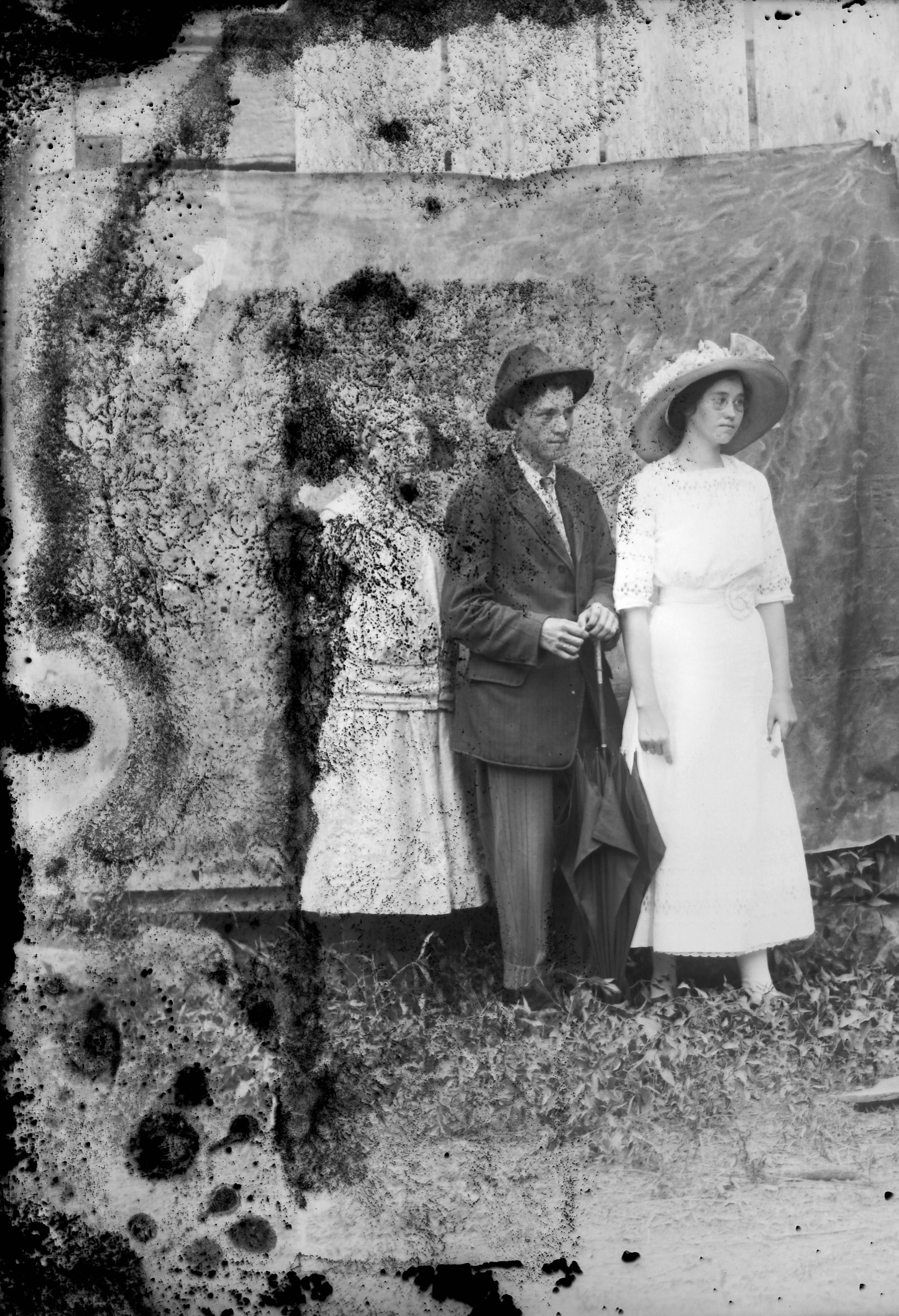 back Sarah Earheart, front Lawrence S & Maude Ross Williams in yard
