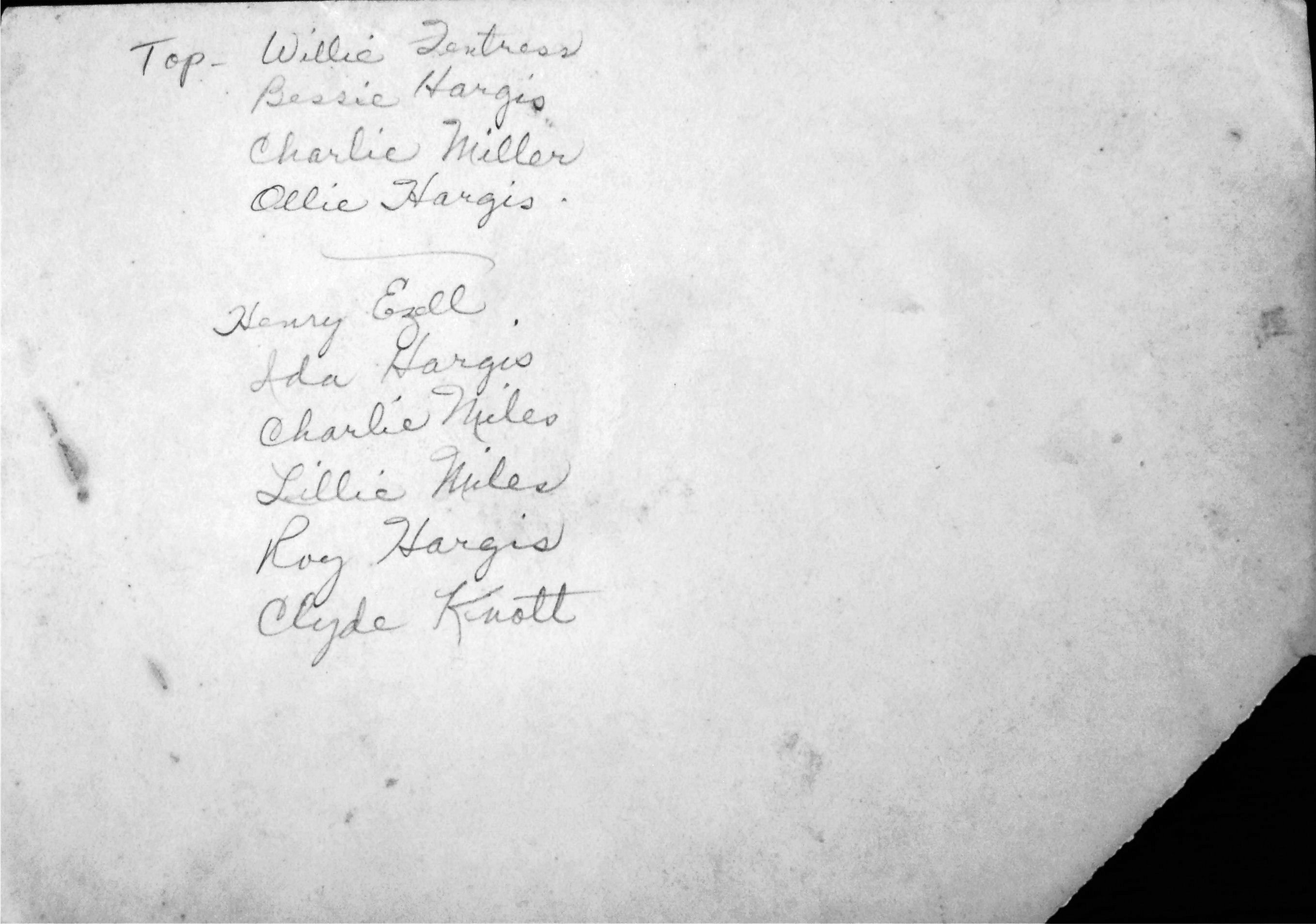 back row Willie Fentress, Bessie Lee Hargis, Charlie Miller, Olive Hargis