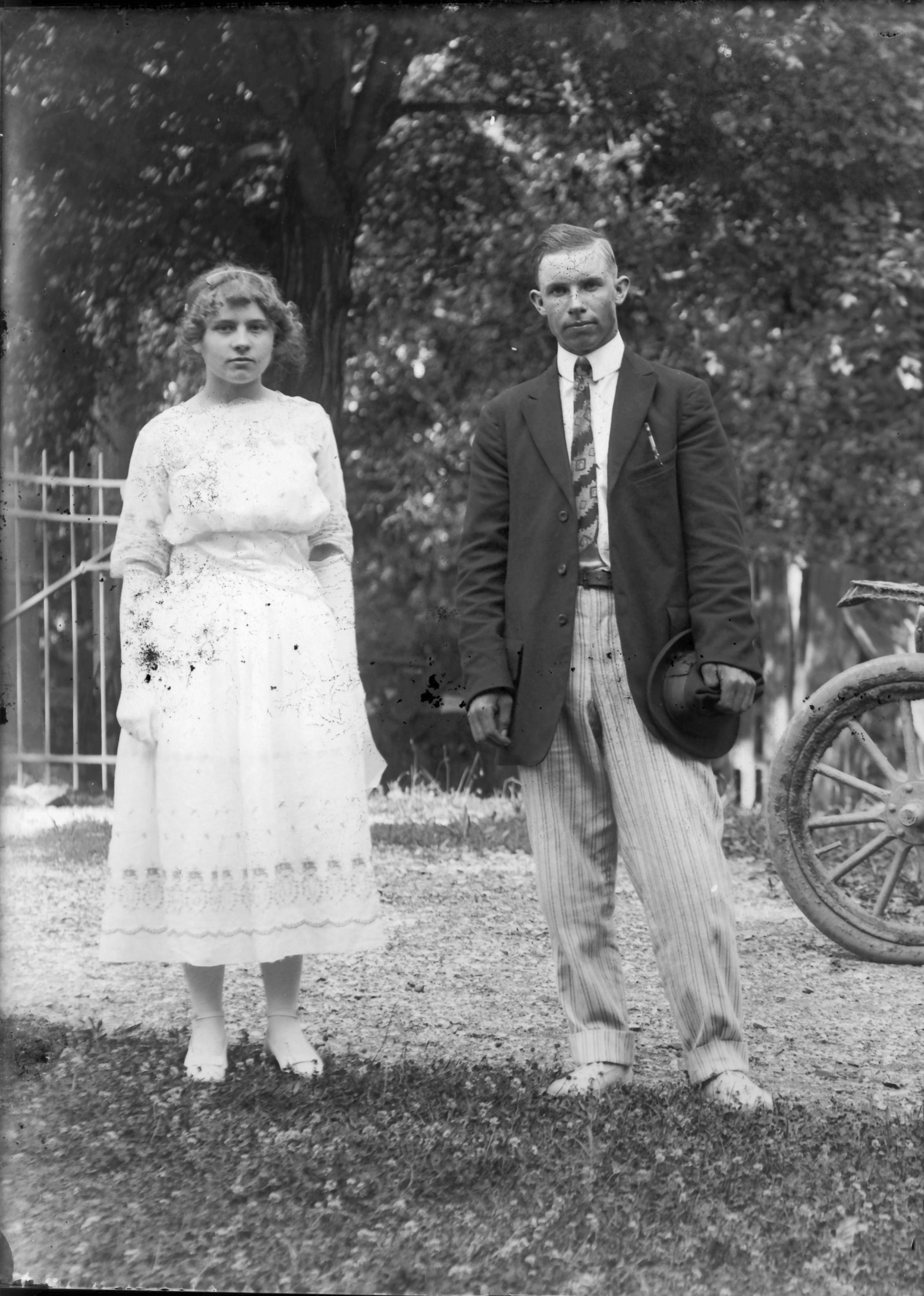 1 male, 1 female by fence