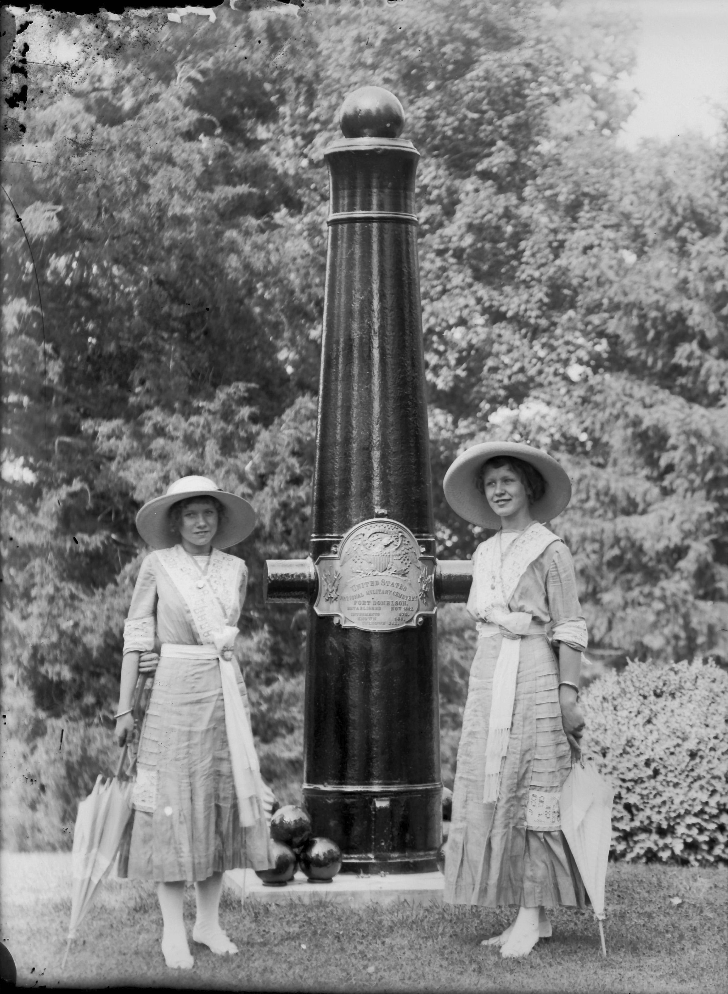 2 females, by cannon monument