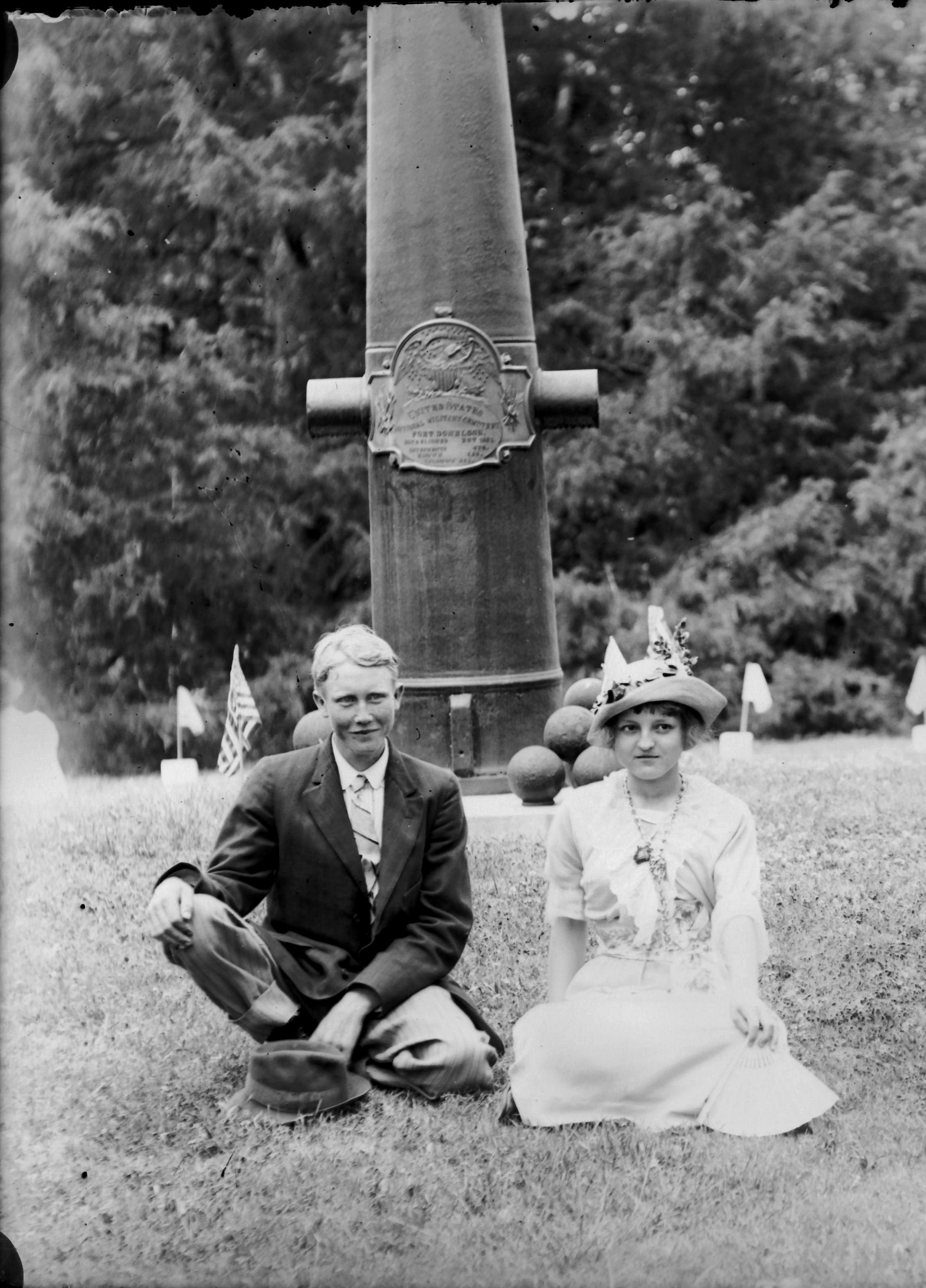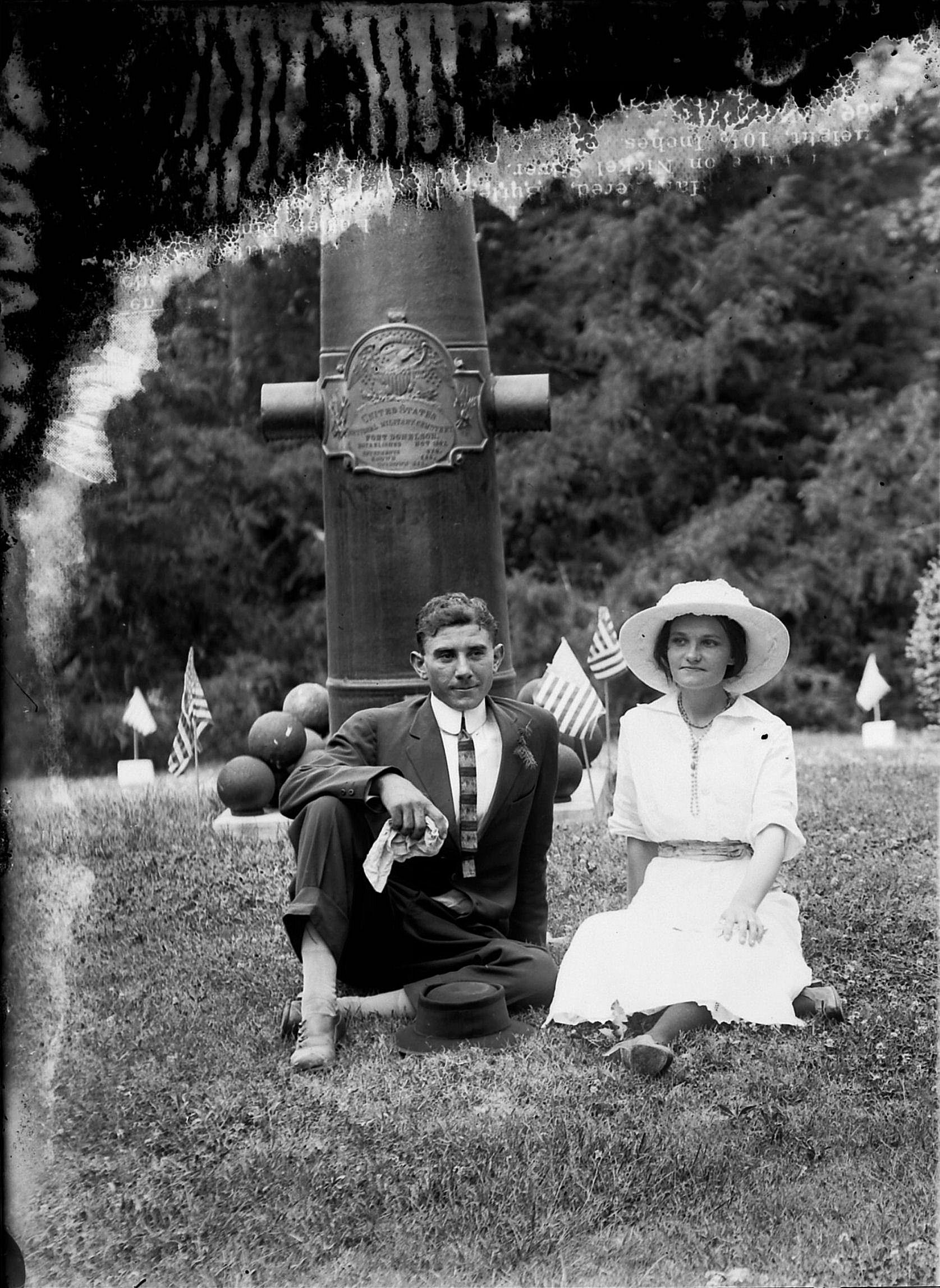 Everett Wallace & Birdie Cherry by cannon monument