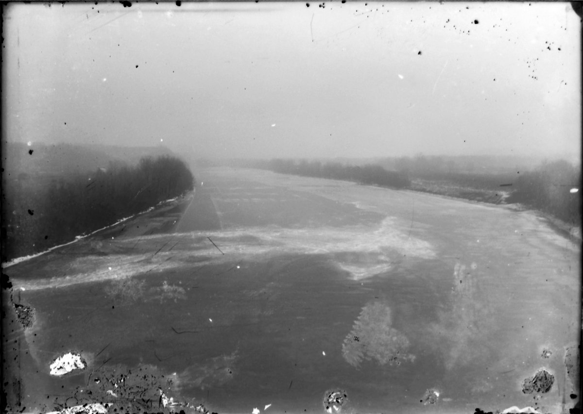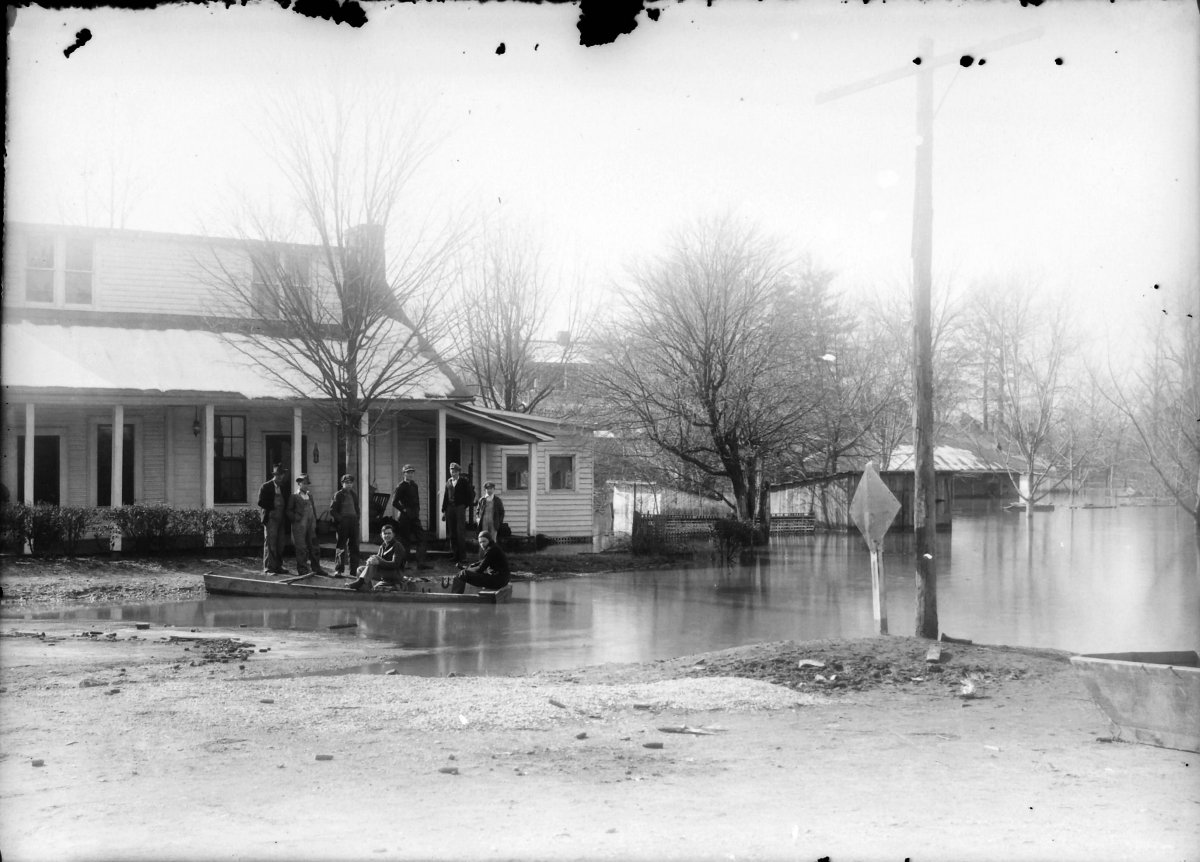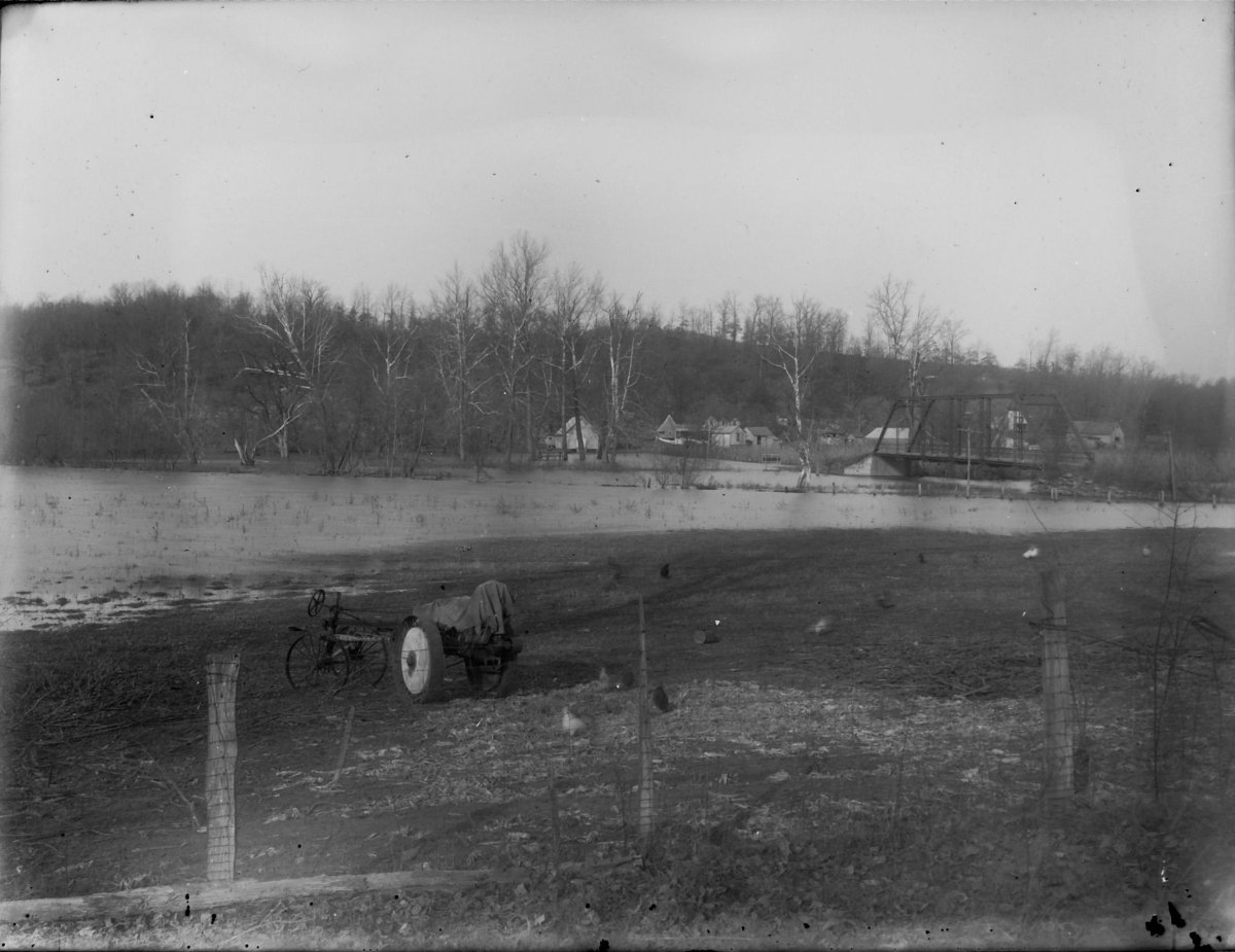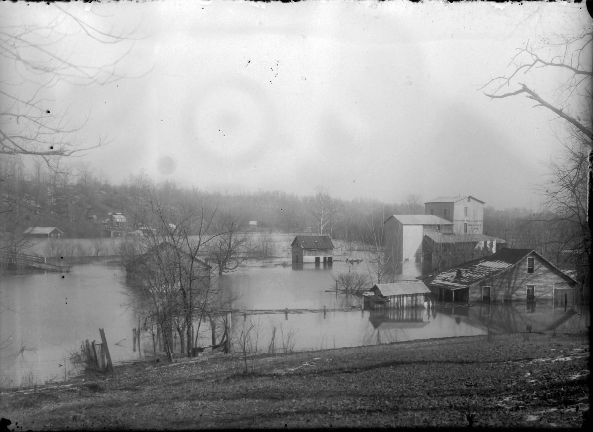 early Saline Creek flood in Bumpus Mills; note old iron bridge that was destroyed in 1928