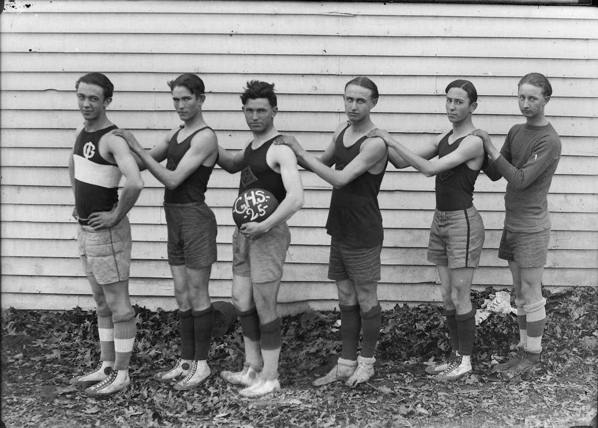 Glendale High School basketball team, 1925: male, Thomas Warren Feltner, Gray Acree, male, male, male
