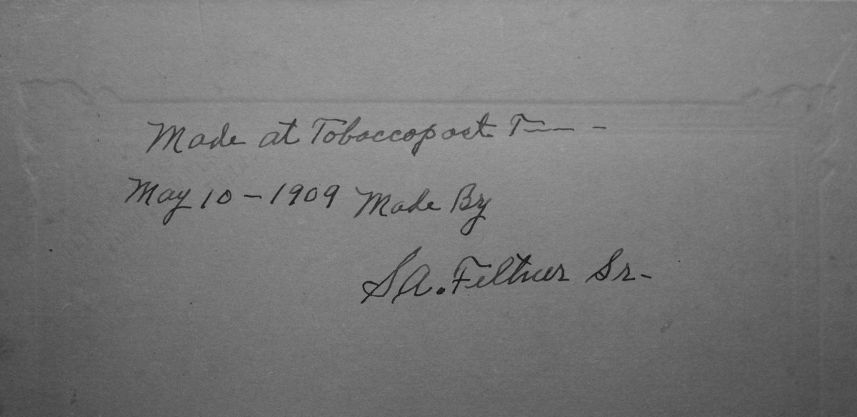 inscription “Made at Tobaccoport, Tenn. May 10, 1909. Made by S A Feltner, Sr