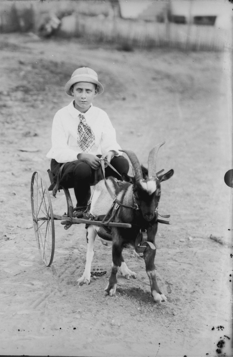 young boy with goat cart