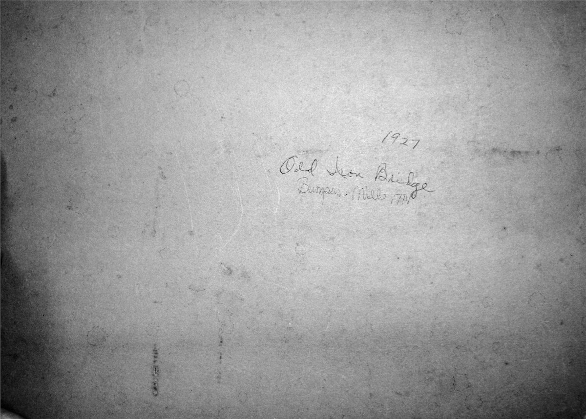 inscription, “1927 Old Iron Bridge, Bumpus Mills, TN”