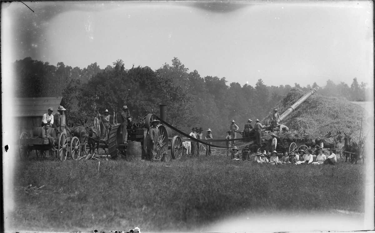 threshing machine at work