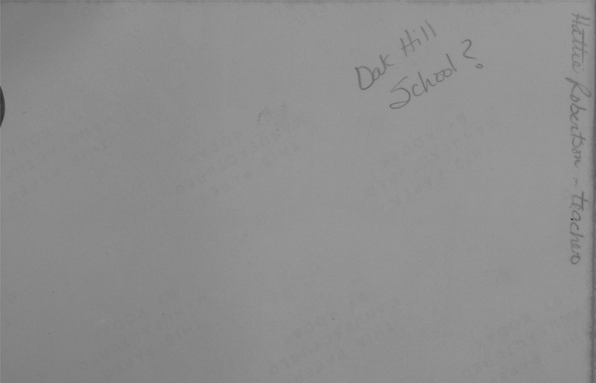inscription “Oak Hill School? Hattie Robertson – teacher”