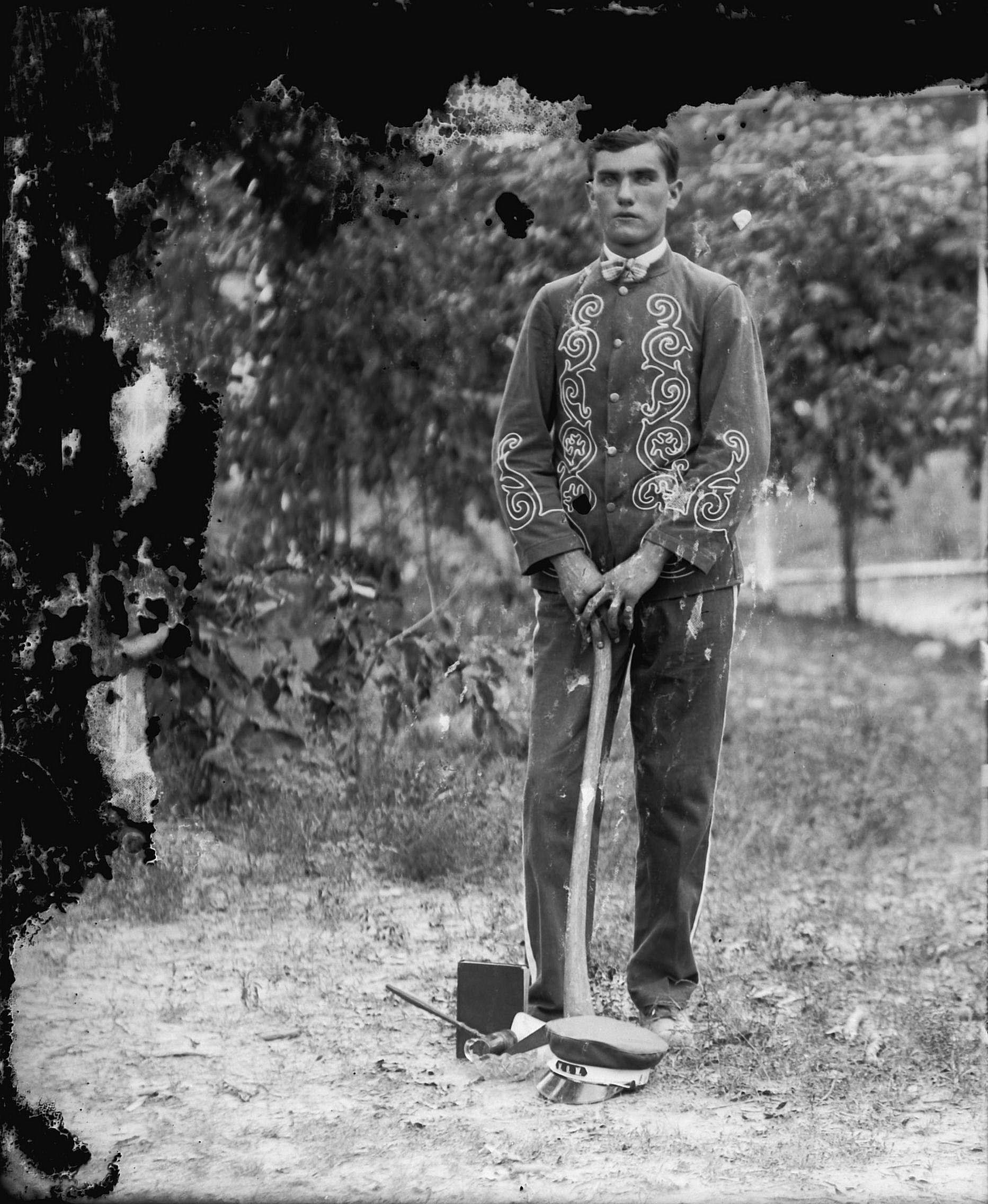 front row – Wayne Clark, Elmer Holland, Charles Hargis, Joe Williams, Carlon Clark, James Edward Pugh, Stephen Lionel Hargis, Jessie Ezell, circa 1913, Big Rock