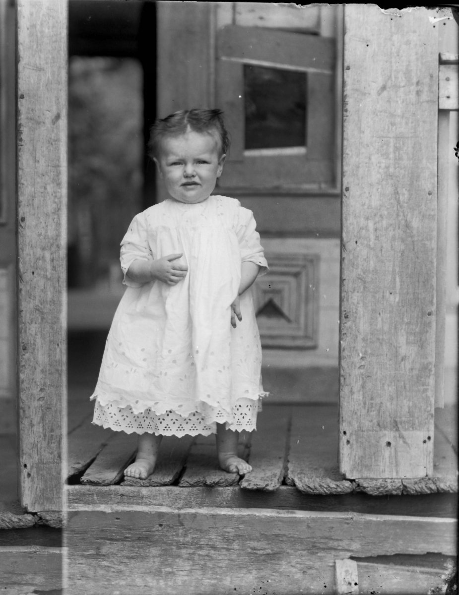 Mary C Feltner daughter of Sam & Mamie Feltner on porch