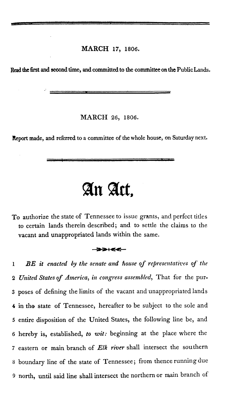 An Act, To authorize the state of Tennessee to issue grants, and perfect titles to certain lands therein described; and to settle the claims to the vacant and unappropriated lands within the same.