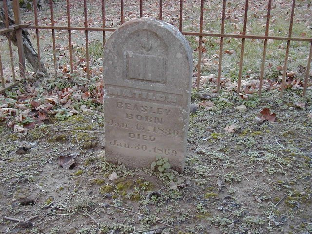 The Isham Beasley Cemetery is located in the yard of the late Sam Bridgewater Wilburn home at #545 Dog Branch Road, north of Cato, Trousdale Co.,Tennessee. The cemetery is enclosed by a iron fence. To the north of this cemetery and about halfway to the barn is located another cemetery called the Hesson-Parkhurst Cemetery, which contains several graves some of which are marked by fieldstones. 36-24-29N 86-02-23W Beasley Cemetery: