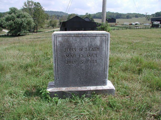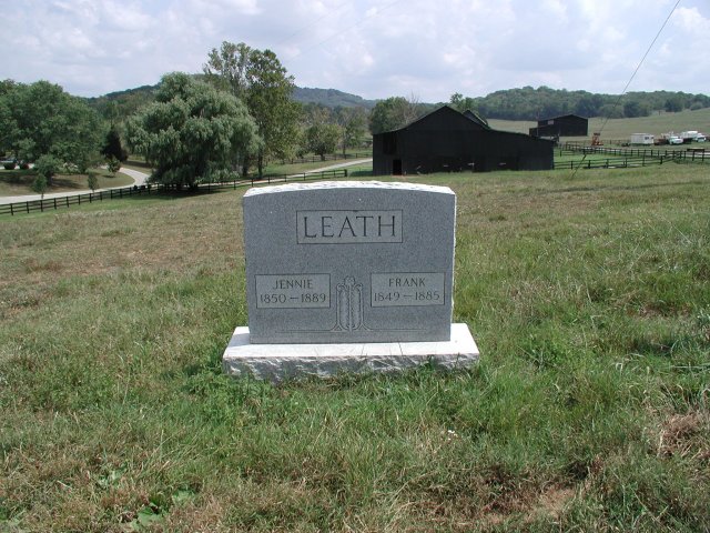 | The Leath Cemetery is located on Harris Branch Road just off Hwy 141 on the Lewis Beasley Farm. It is up on a slight hill beside the paved farm road. 36-25-45N 86-10-80W |