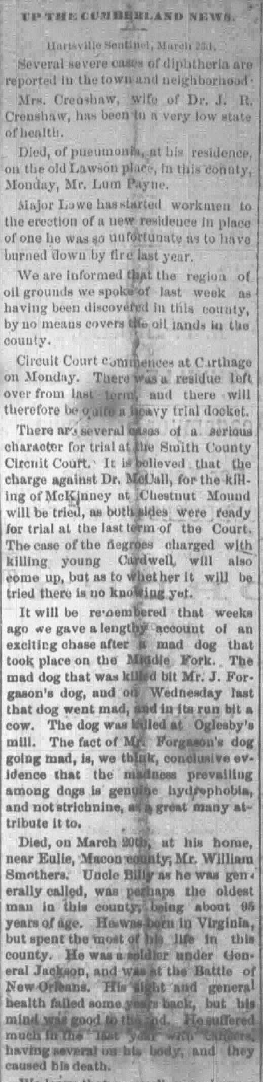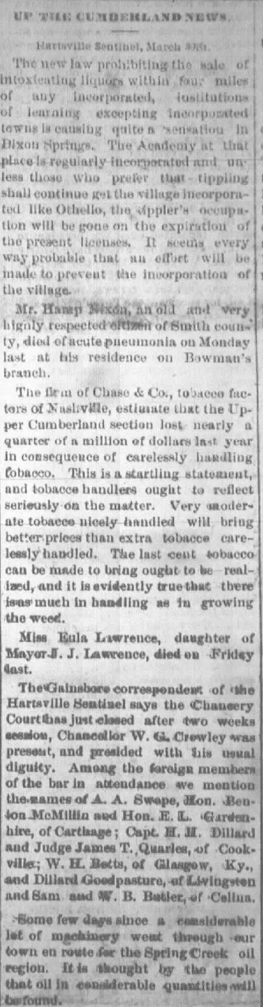 (From the Gallatin Examiner Microfilm Misc., Date: 1860-1945, Roll #103)Gallatin Examiner, Gallatin, TN March 30, 1877