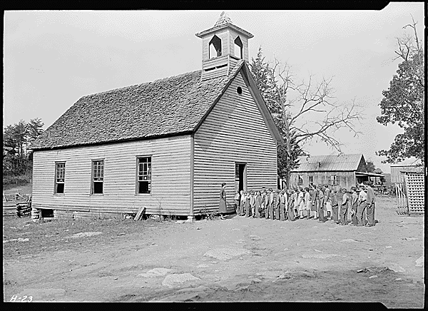A little country church, Sharps Station M.E. Church, near Loyston, Tennessee. Congregation leaving at close of the service. 10/29/1933