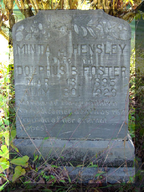 (sister of David Franklin Foster; widow of Joseph C. Hensley) as noted in the