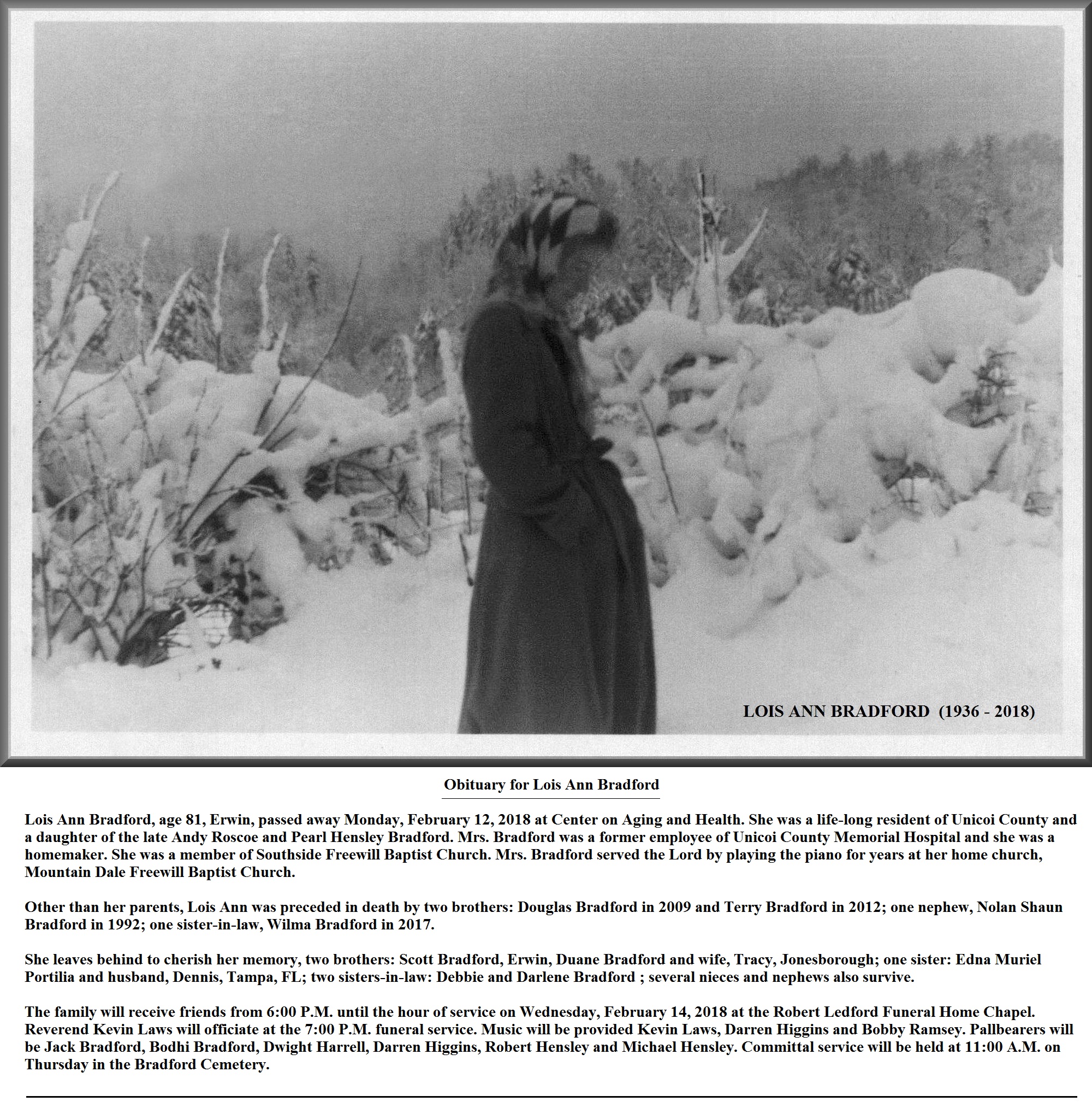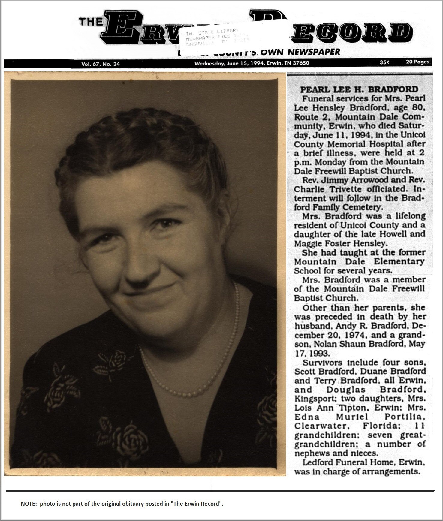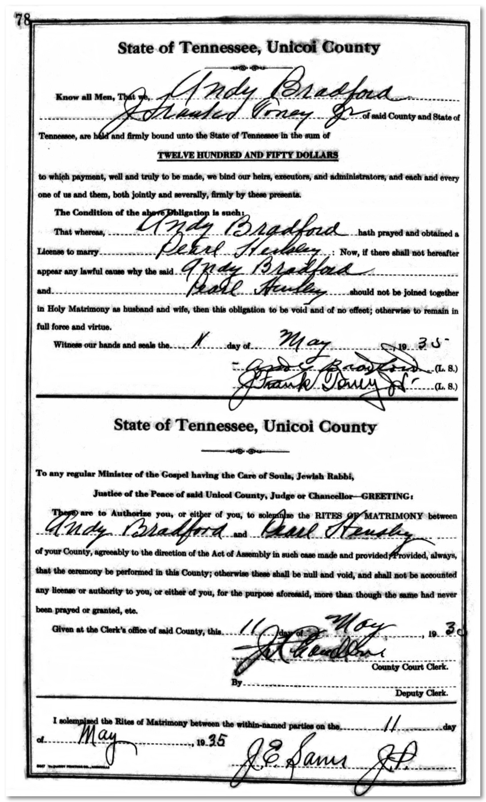 w/o Andy Roscoe Bradford; married May 11, 1935; they had