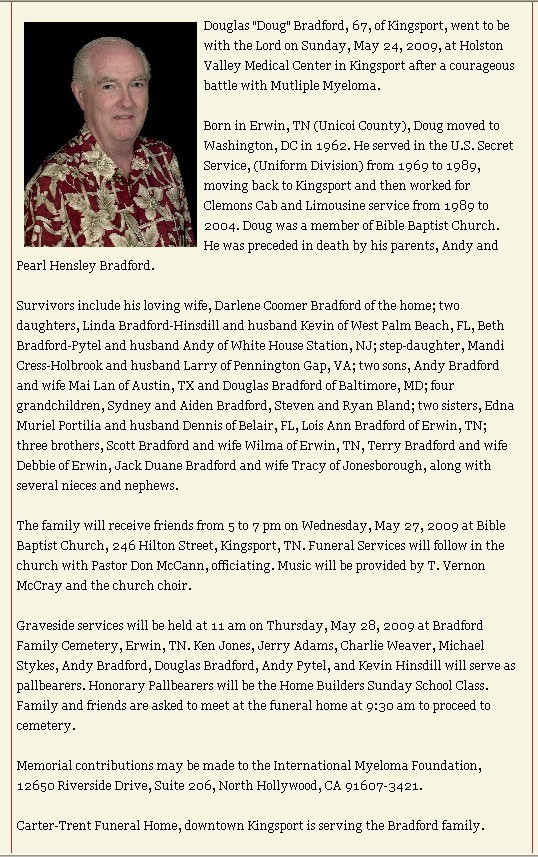 with multiple myeloma. Doug was born in a farm house built