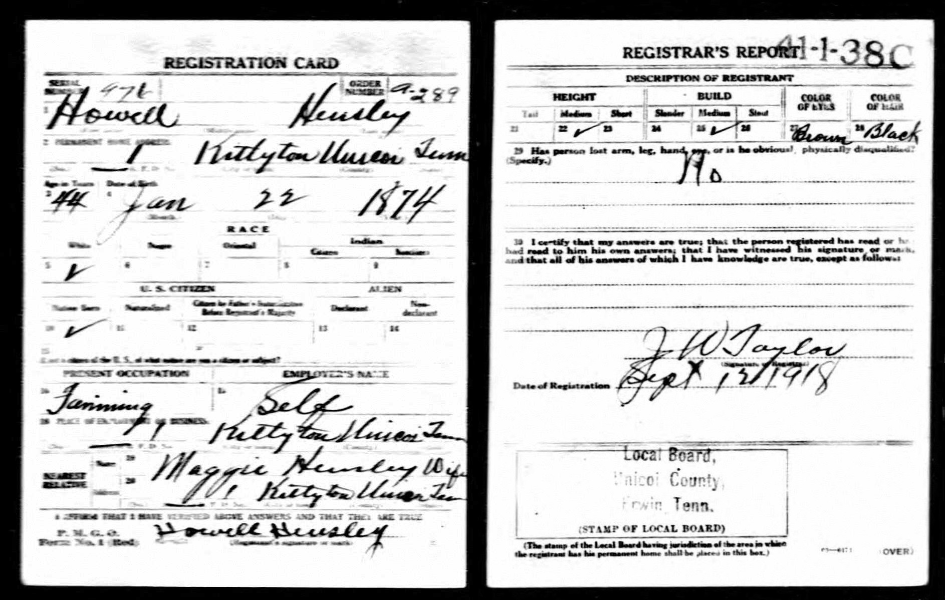 established in 1962 with the death of Howell Hensley [s/o