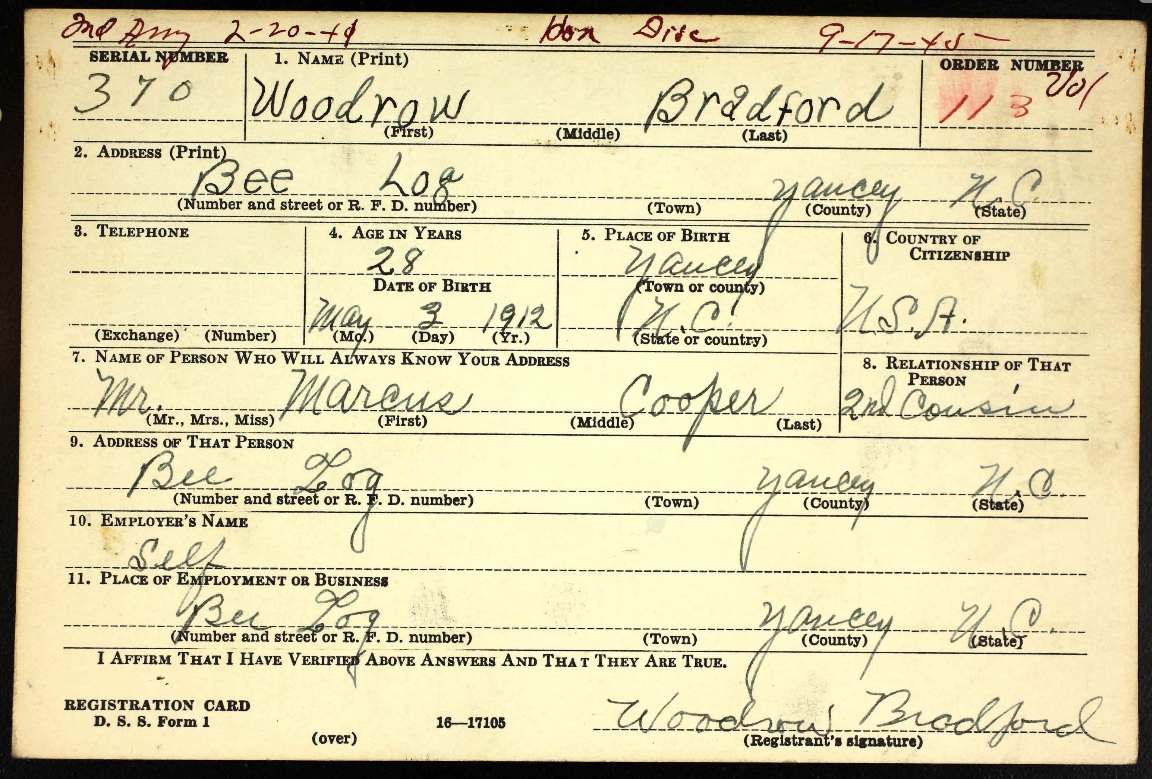 NOTE: Woodrow enrolled in the 2nd Army on February 20,