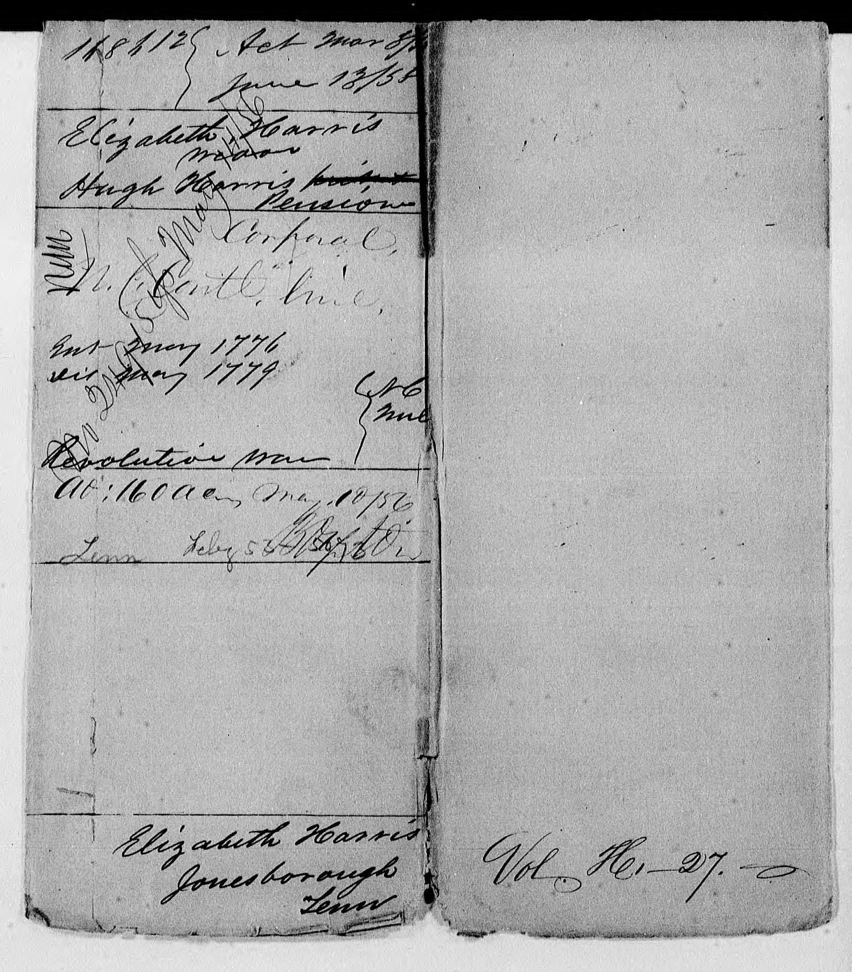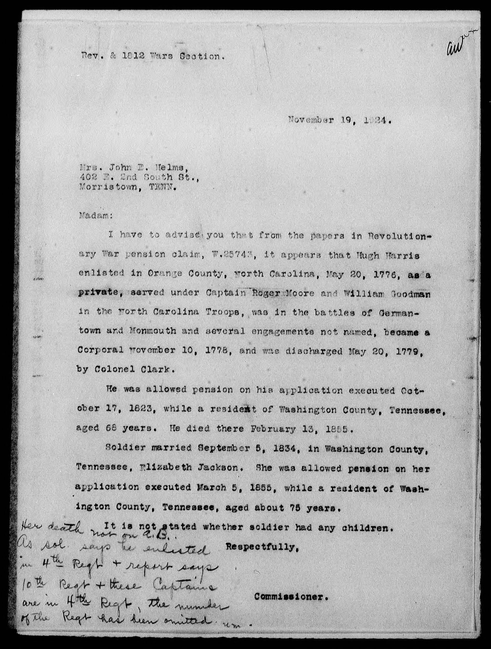 Corporal Hugh Harris Sr. Revolutionary War Veteran Pension File W-25743 Updated 10/21/23 |
