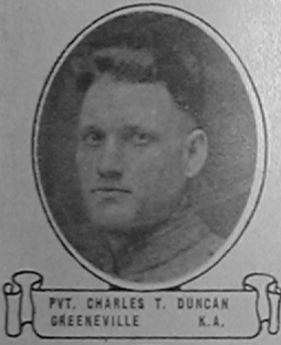 Listed on the roster of company 'L', First Tennessee infantry, U.S. National Guard, Camp Ord, Eagle Pass, Texas, Oct.1916.